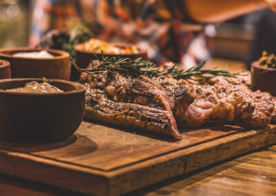 Cortes premium cocidos a la perfección, para los más exigentes. Ofrecemos una selección de carnes que van desde el bife de chorizo hasta el ojo de bife, pasando por cortes más exóticos. Nuestros chefs se aseguran de que cada pieza sea cocinada al punto justo, resaltando sus jugos y sabores naturales.